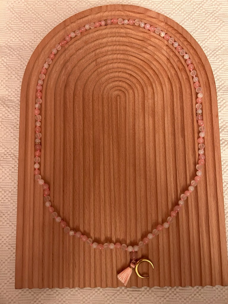 Eine traditionelle Malakette hat 108 Perlen (darunter eine bestimmte Anzahl Edelsteinperlen, zum Beispiel 12), eine Guru Perle, einen Anhänger und eine Quaste. Die Malakette kann zur Meditation und / oder im Yoga genutzt werden.
